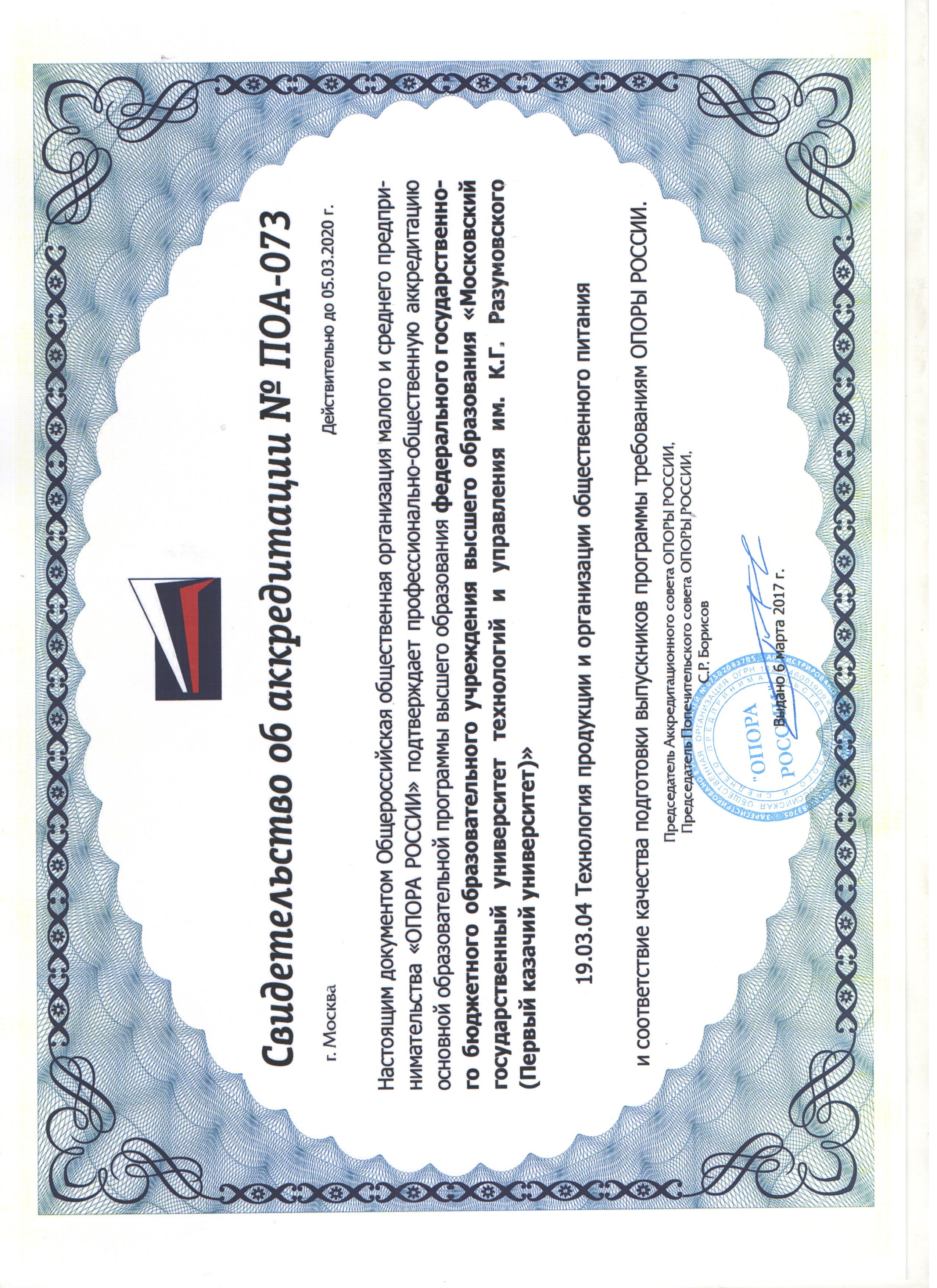 19.03.04 Технология продукции и организация общественного питания - Технология продукции и организация общественного питания. срок аккредитации 2017-2020