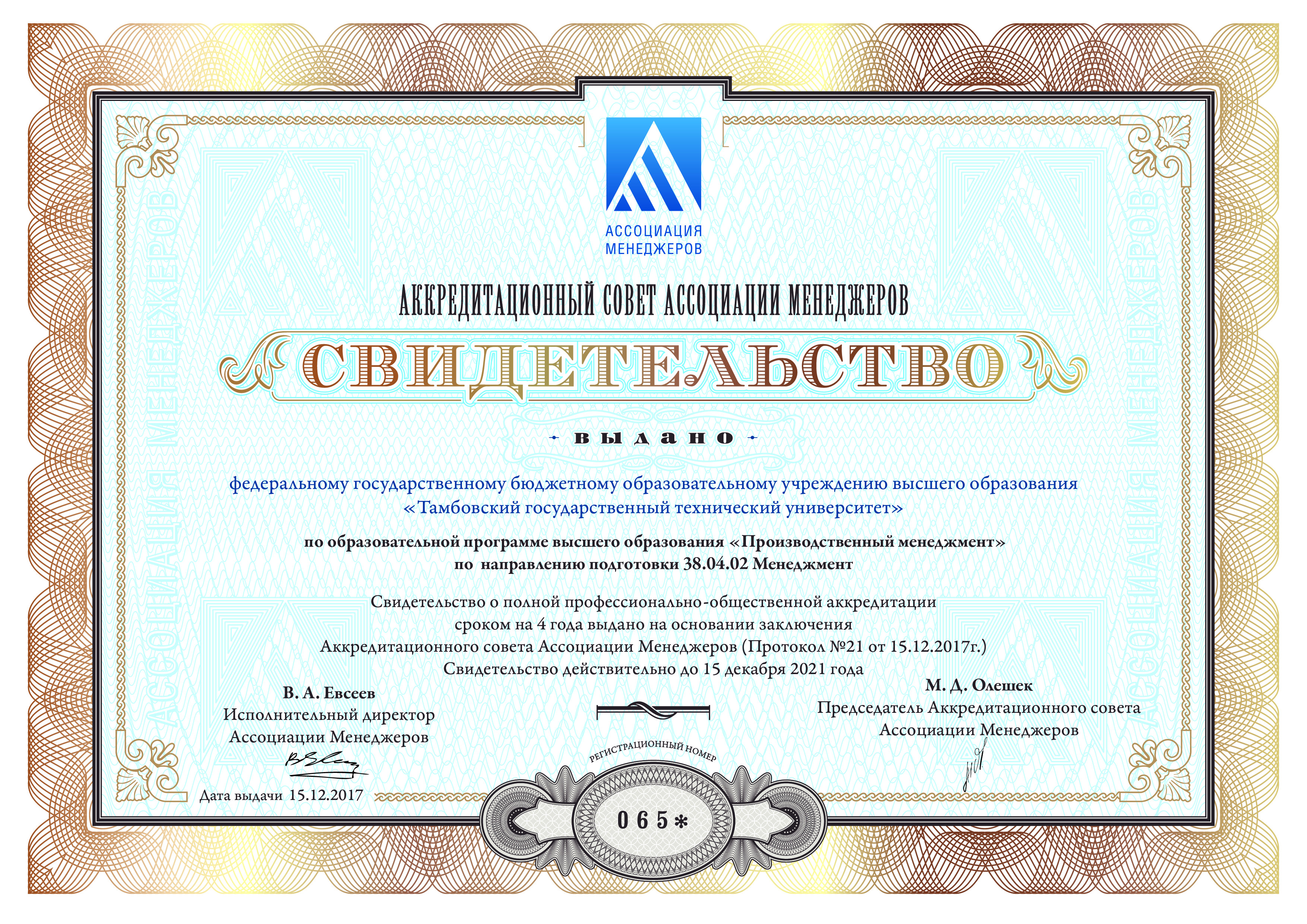 38.04.02 «Менеджмент» «Магистр делового администрирования». срок аккредитации 2017-2021